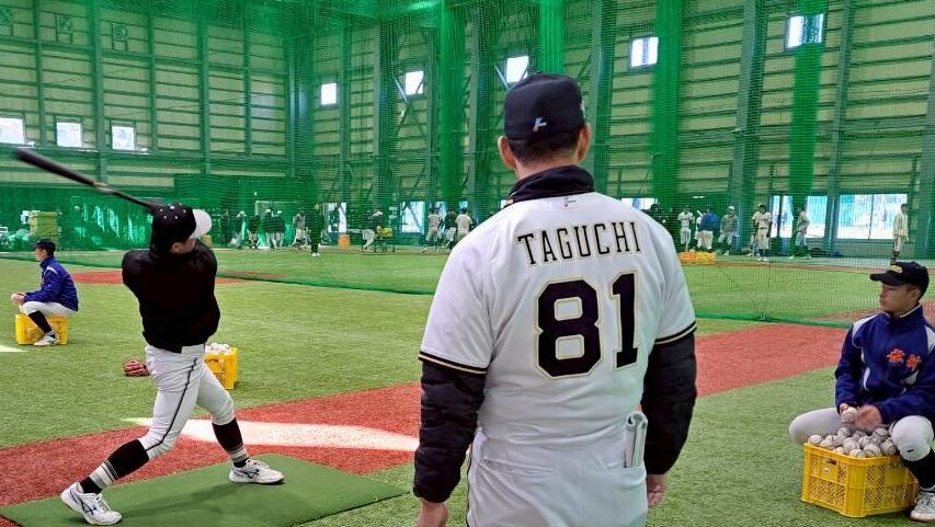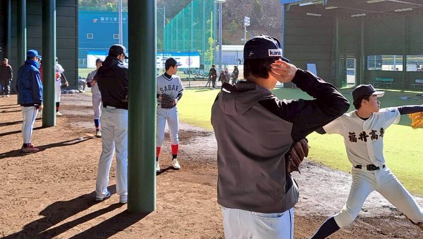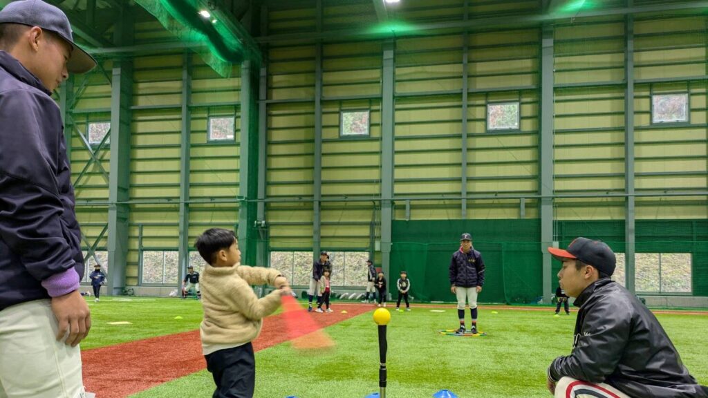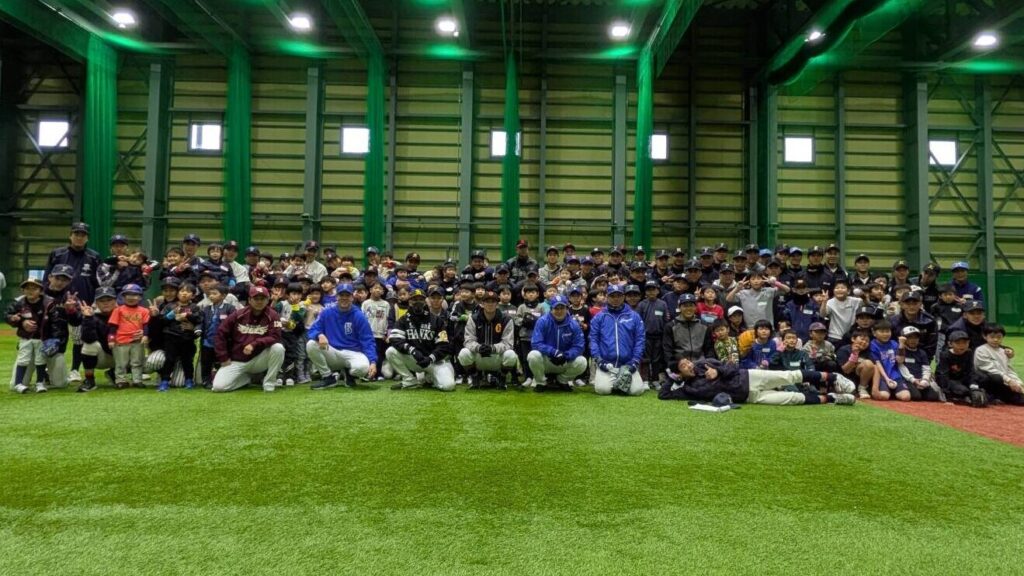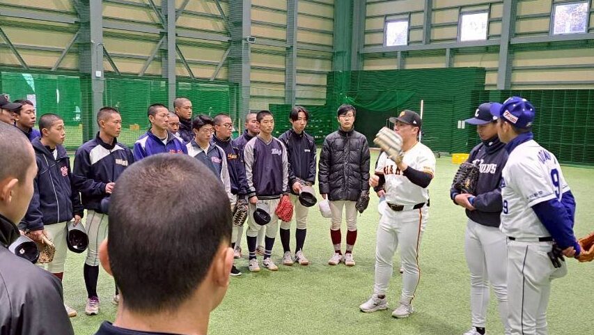 県内の高校野球部員約200名と指導者約40名が参加し、プロ野球選手から実践的な助言を受けたり、野球への心構えを学んだりしました。