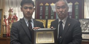 敦賀気比高校の 岡部 飛雄馬 君が選出され、1月28日に県高野連の松島会長より表彰状が授与されました。